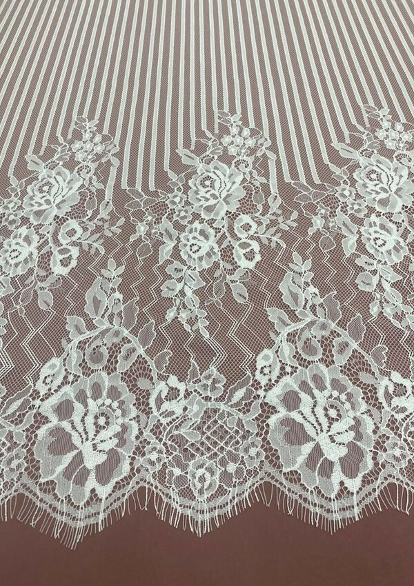 A Renda Chantilly é uma escolha clássica na moda noiva, devido a sua elegância e desenhos sempre florais. É uma renda leve, sem muita estrutura e da um ar super romântico e delicado, muito usada para realçar os detalhes das roupas, como em mangas e decotes. A franjinha também é uma característica bem presente nesta renda.